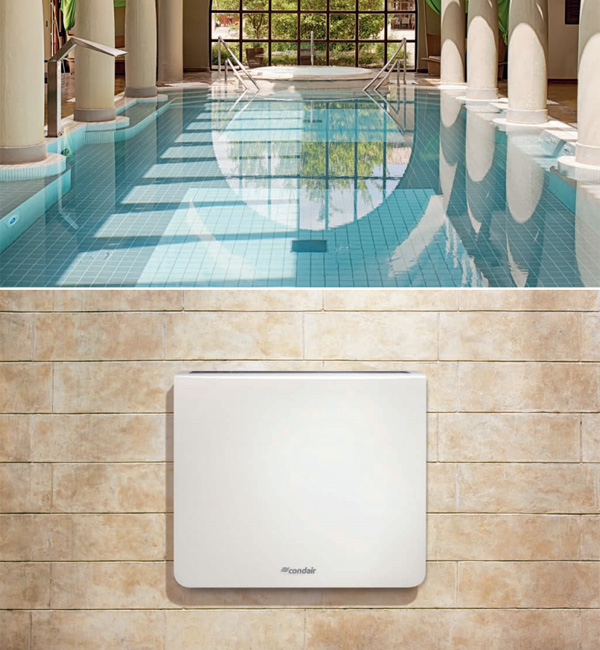 A similar range is available to be located in an adjacent room. Air is drawn from the pool area via ducting, dried by the dehumidifier and then supplied back to the room.