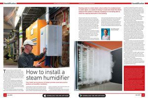 Another thing that an installer ought to consider is the installation of a drip tray under the steam lance in the duct to protect against corrosion. Also, all humidifiers need to be serviced, so clear access to the humidifier is essential.